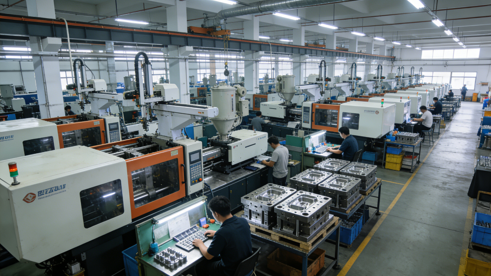 | Large structural parts | 1–4 cavities | Automotive components | High mold reliability | Lower | High clamping force |