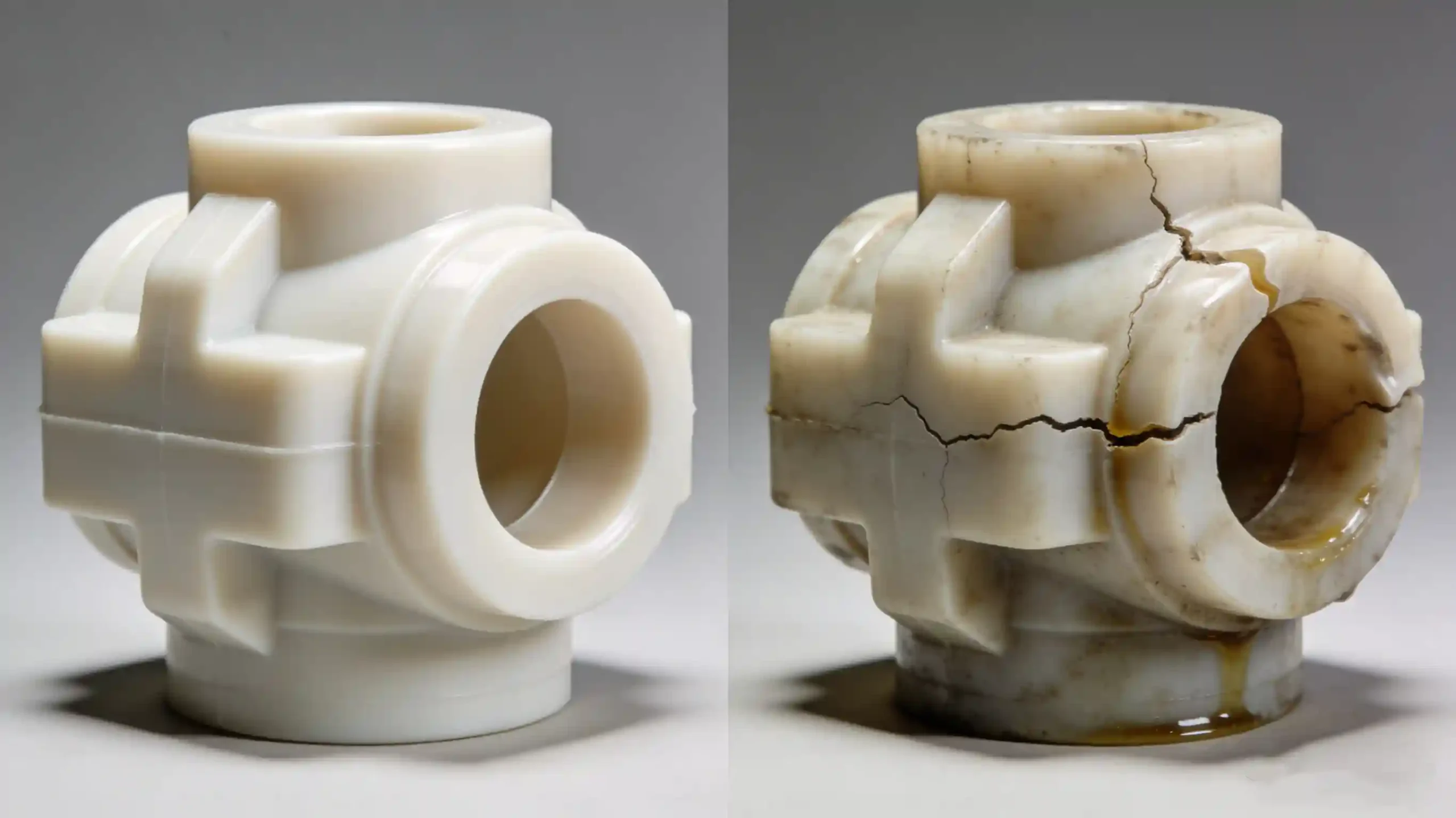Stress coupling effect: Residual stress from injection molding can amplify oil-induced material degradation.