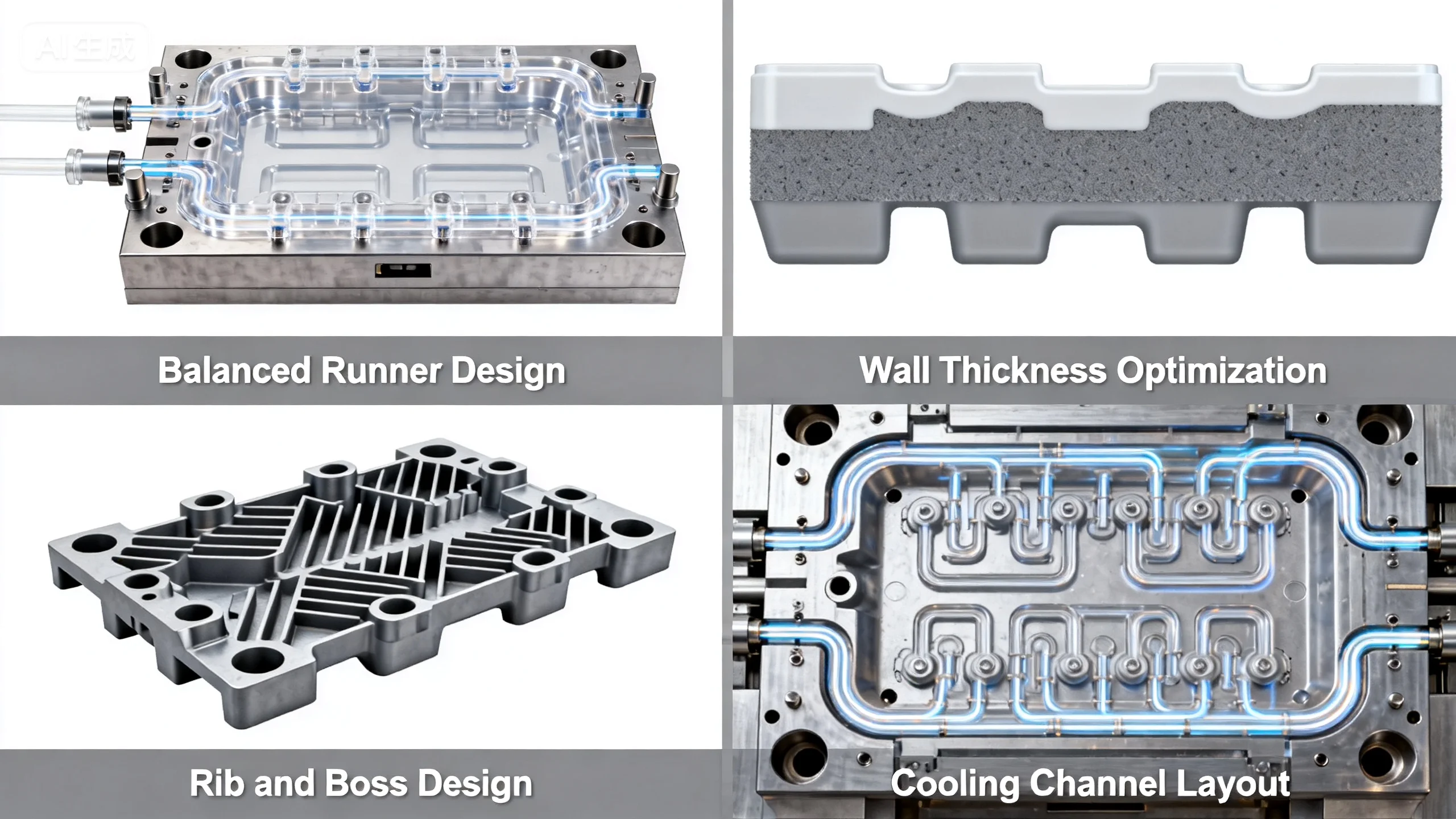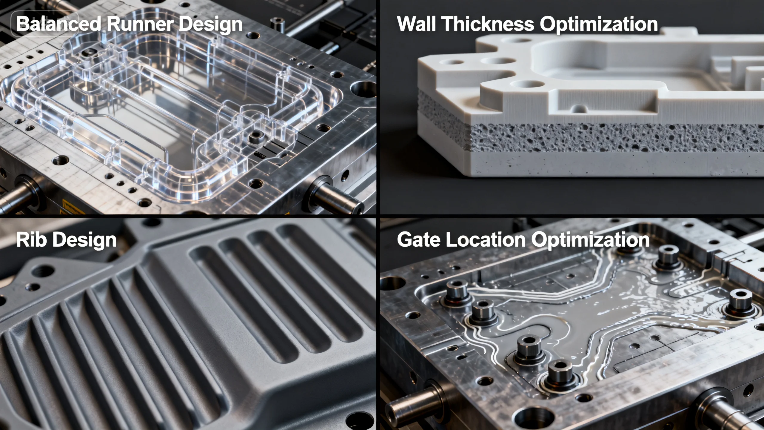 - Balanced Runner Design: Minimizes flow path differences and ensures uniform filling.
